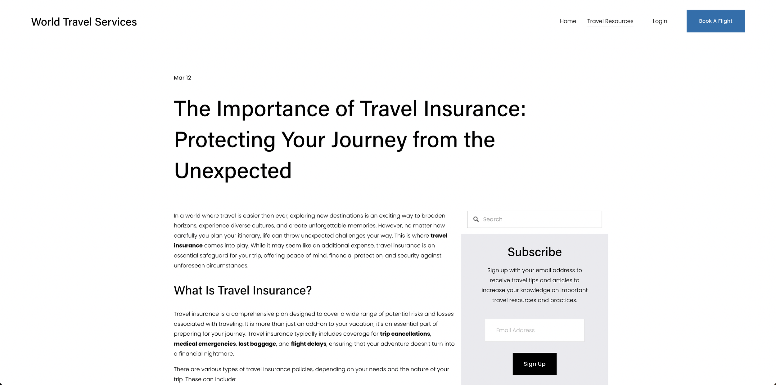 World Travel Services, an experienced travel agency, sought to expand its reach and diversify its revenue streams.